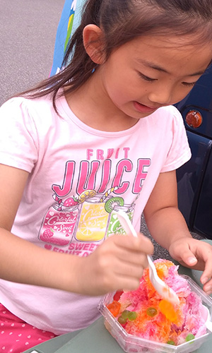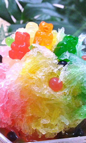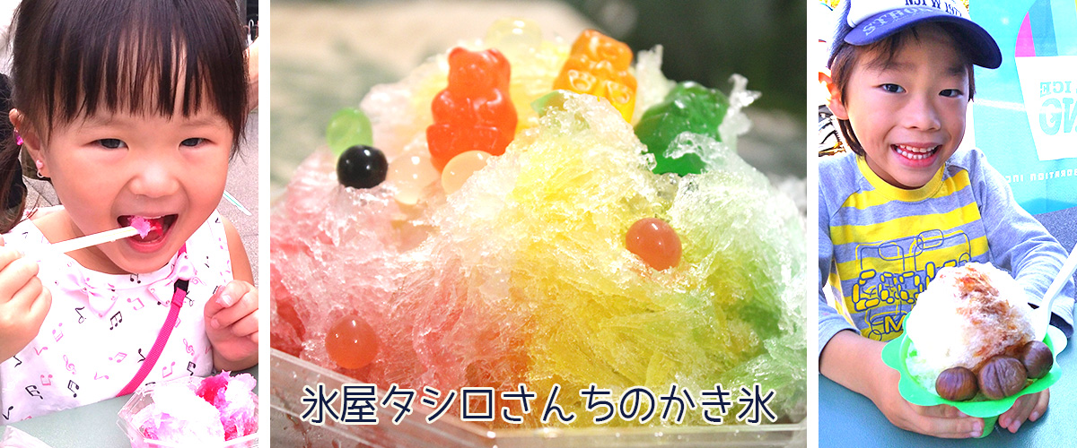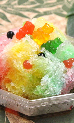 ブルーハワイ、いちご、メロン、レモン、ぶどう、マンゴー、ピーチ、コーラ、コーヒー、ラムネ、マスカット、赤リンゴ、青リンゴ、オレンジ、日向夏、キャラメル、プリン、エメラルドパイン、みぞれお好きなシロップを2種類選べます♪